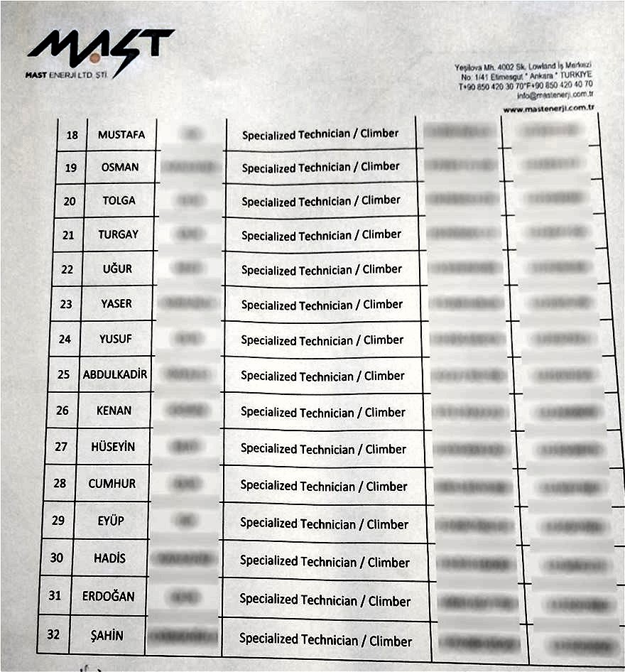 Λίστα με όλα τα ονόματα, τις βίζες και τις ειδικότητες των 32 τεχνικών της Mast Energy με έδρα την Άγκυρα διαθέτουν οι υπηρεσίες του ΑΔΜΗΕ, ακυρώνοντας τον ισχυρισμό ότι το αίτημα της ελληνικής τεχνικής εταιρείας ΑΤΕΡΜΩΝ για σύναψη υπεργολαβίας με την τουρκική εταιρεία κατασκευής και συντήρησης ενεργειακών υποδομών απορρίφθηκε από τον Διαχειριστή, άρα εμποδίστηκε και η συμμετοχή τους στο έργο.